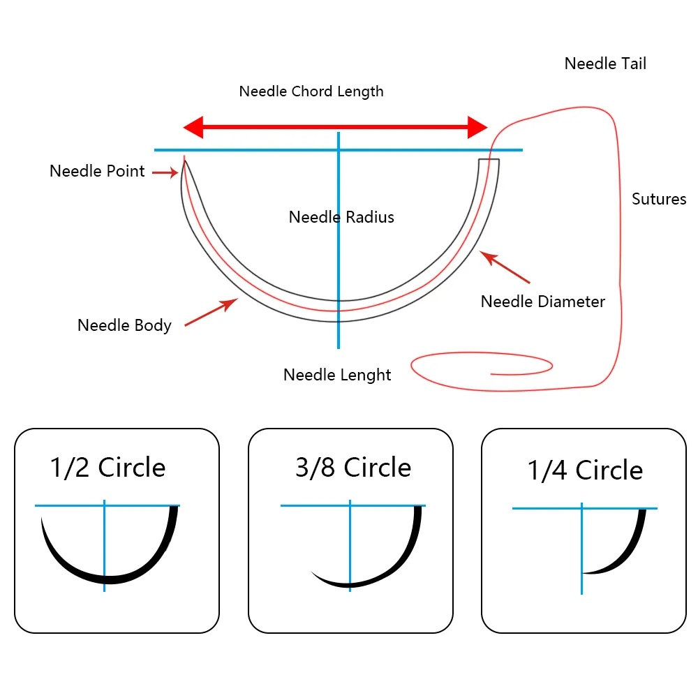 round bodied (taper point), curved cutting, reverse cutting, blunt, taper cutting, straight, spatula, etc.