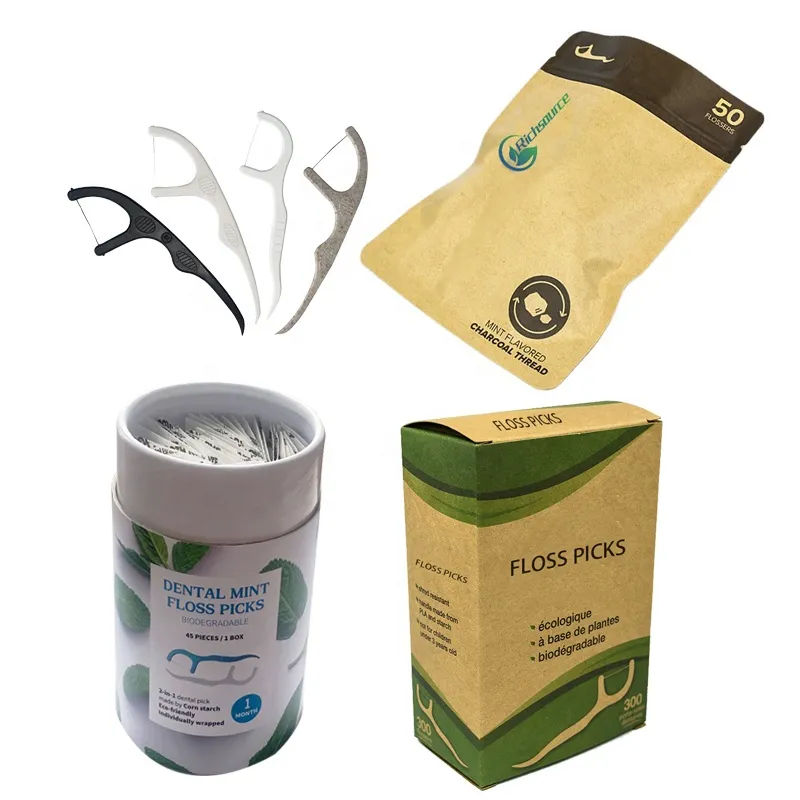 Oral care biodegradable & plastic disposal dental floss picks