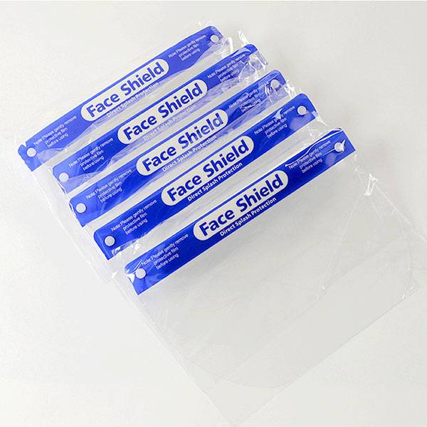 Appearance and structure: Full face protection from droplet, dust, oil smoke and so on; Protects face from blood, body fluids or harmful chemical splash; Safety surgical medical face shield;