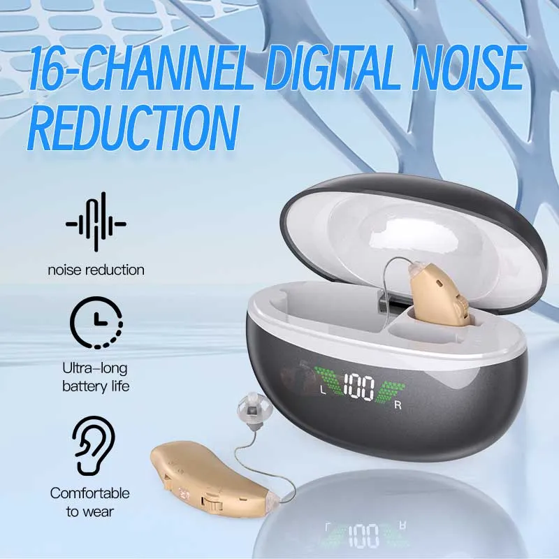 1. Advanced 16-Channel Digital Chip; 2. Extended Battery Life; 3. Intelligent Noise Reduction.ORTGM-353 High Quality Rechargeable RIC Hearing Aids BTE