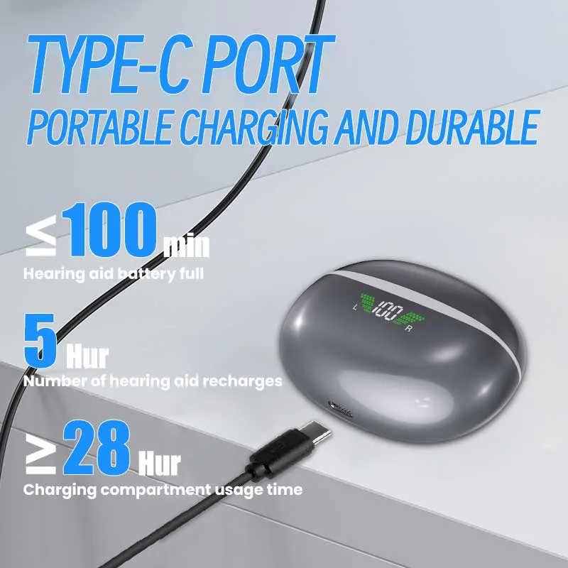 Say goodbye to battery anxiety with up to 25 hours of continuous use, ensuring uninterrupted hearing support throughout the day. The magnetic charging interface ensures convenient recharging, allowing you to focus on what matters most.