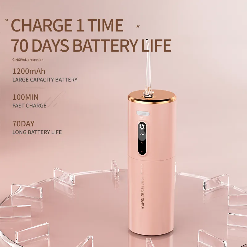 Com uma bateria grande de 1200mAh, este irrigador oral precisa apenas de 100 minutos de carregamento rápido para durar 70 dias. Sem recarga frequente – desfrute de cuidados bucais consistentes a qualquer hora e em qualquer lugar.
