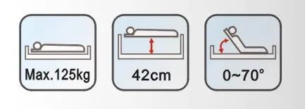 - 1. A estrutura de aço com revestimento em pó confere a esta cama hospitalar grande durabilidade, garantindo uso de longo prazo em ambientes médicos.