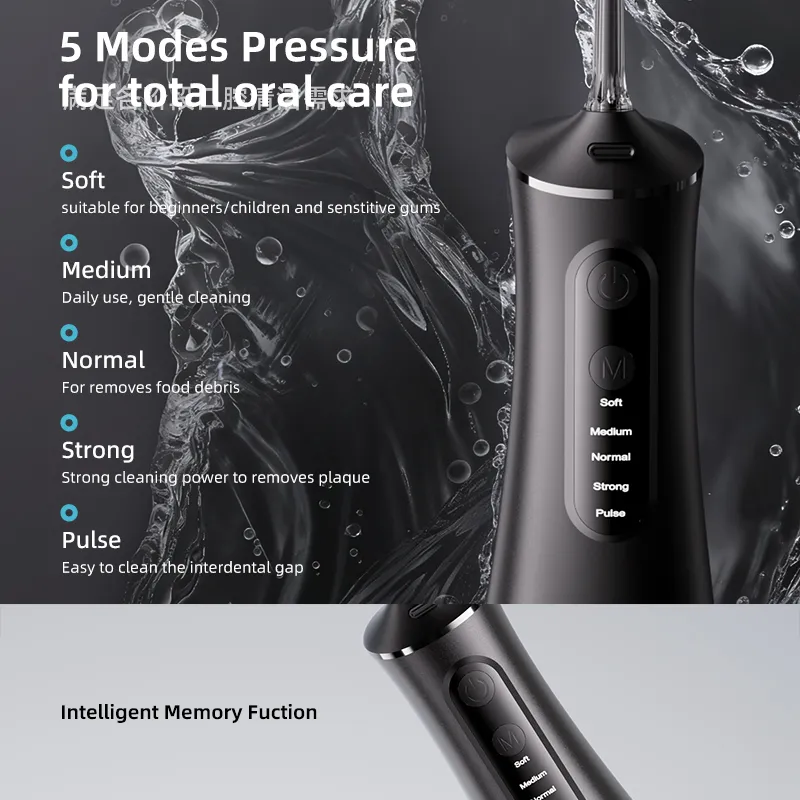 3. 5 Modes for Personalized Oral Irrigator Care: This oral irrigator offers 5 pressure modes (Soft to Pulse) to fit every need—perfect for beginners, sensitive gums, daily cleaning, or deep plaque removal. Plus, the intelligent memory function saves your favorite setting for hassle-free use.